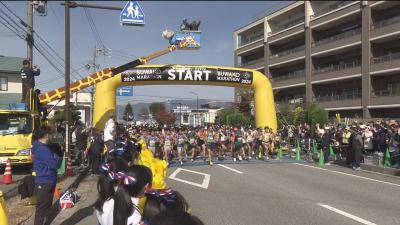 長野県諏訪市、諏訪湖畔で行われるハーフマラソン大会。およそ7,000名のランナーが秋の信濃路を爽やかに駆け抜けます。エントリーの多くは県内からの参加者です。
