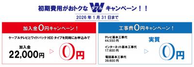 ・ケーブルテレビご加入時に、ワイドパックHDDをお申込みで加入金が0円に!