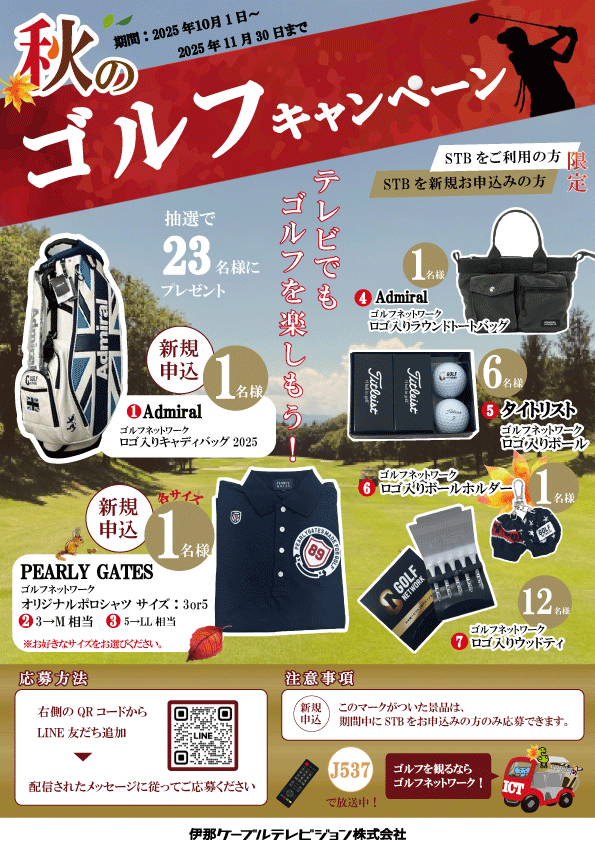 伊那ケーブルテレビでは、秋のゴルフキャンペーンを実施中!