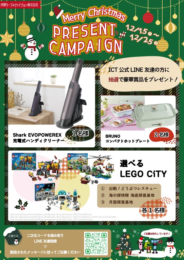 伊那ケーブルテレビでは、豪華賞品が当たる